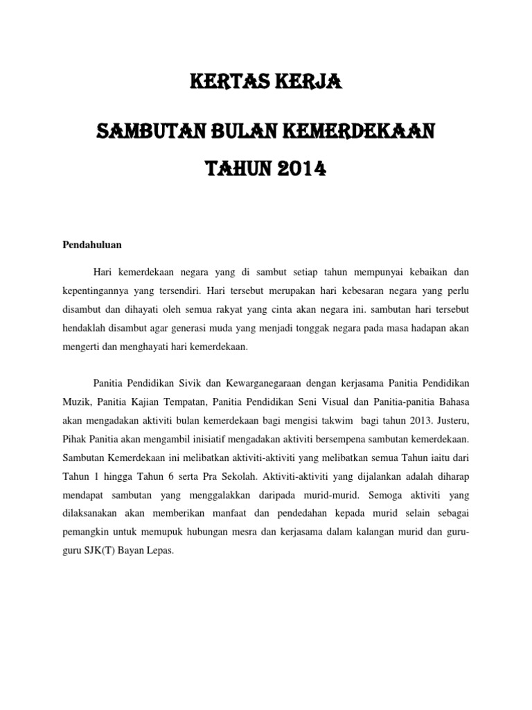 . Kertas kerja sambutan kemerdekaan peringkat sekolah 1. Kertas kerja sambutan kemerdekaan peringkat sekolah tahun 2015 sambutan kemerdekaan peringkat sekolah. Justeru pihak Panitia akan mengambil inisiatif.